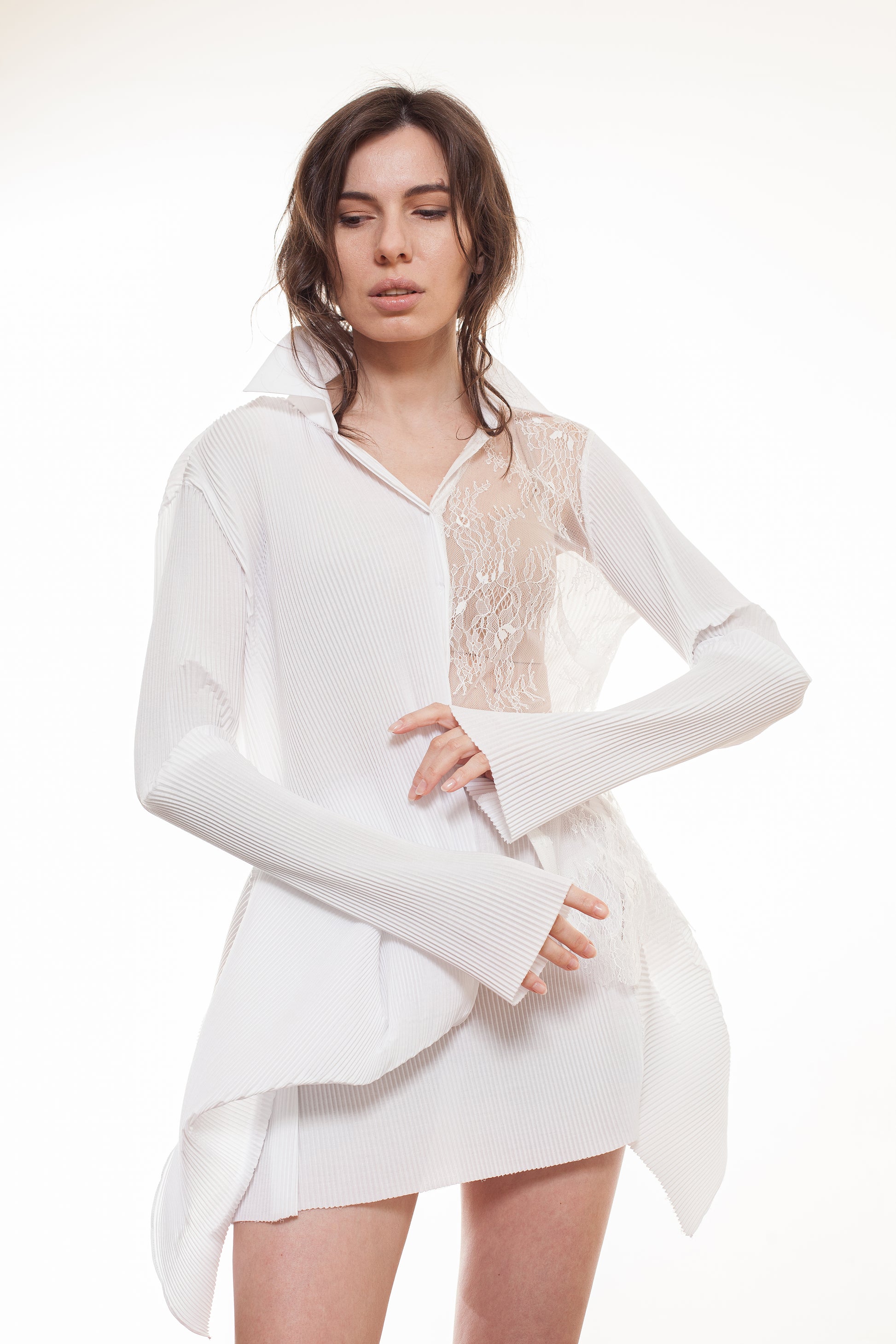 Can have a loose cut, as in the photo, or a fixed waist thanks to the inner belt.